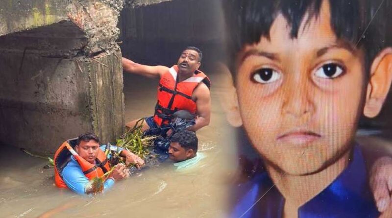 इंदौर शहर में बुधवार रात हुई तेज बारिश में मायाखेड़ी क्षेत्र में ओमेक्स सिटी के करीब एक बच्चा तेज पानी के बहाव में नाले में बह गया। बच्चे का नाम राजवीर मालवीय बताया जा रहा है और उसकी उम्र करीब 8 साल है।